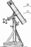 На рисунке выше показан более совершенный вариант любительского телескопа, на тубусе которого показаны детали а и б визира для наведения телескопа на светило.