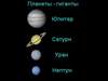 Юпитер - пятая планета Солнечной системы. Он относится к планетам гигантам, сравнительный рисунок которых вы можете увидеть слева. Юпитер - самая большая планета Солнечной системы - отстоит от Солнца в 5,2 раза дальше, чем Земля, и затрачивает на одни оборот по орбите почти 12 лет. Экваториальный диаметр Юпитера 142 600 км (в 11 раз больше диаметра Земли). Период вращения Юпитера - самый короткий из всех планет - 9 ч. 50 мин. 30 с. на экваторе и 9 ч. 55 мин. 40 с. в средних широтах. Таким образом, Юпитер, подобно Солнцу, вращается не как твердое тело - скорость вращения неодинакова в разных широтах. Из-за быстрого вращения эта планета имеет сильное сжатие у полюсов. Масса Юпитера равна 318 массам Земли. Средняя плотность 1,33 г/см3, что близко к плотности Солнца. Ось вращения Юпитера почти перпендикулярна к плоскости его орбиты. Даже в небольшой телескоп видно полярное сжатие Юпитера и полосы на его поверхности, параллельные экватору планеты.