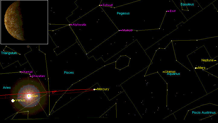 Меркурий - вечерняя (восточная) элонгация 12 марта 2005