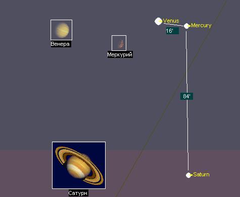 Тройное соединение планет Меркурия, Венеры и Сатурна 26 июня 2005 года
