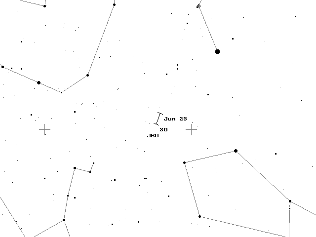 Максимум действия метеорного потока Июньские Боотиды наступит 27 июня 2005 года. После неожиданной вспышки активности этого метеорного потока в 1998 году, ZHR достигло 50 - 100 в течение больше чем полусуток. В виду этого, всем наблюдателям метеоров желательно контролировать ожидаемое метеорное действие. До 1998 года было только три случая: в 1916, возможно в 1921 и 1927 г.г., когда Июньские Боотиды были неожиданно активны. Между 1928 - 1997 г.г. сообщений не поступало и казалось очевидным, что поток больше не пересечет орбиту Земли. Динамика этого потока плохо изучена. Прародительница Июньских Боотид - комета 7P/ Понса-Виннеке была в перигелии в январе 1996 года и возвратилась снова в мае 2002 года. В настоящее время ее орбита находится в 0,24 АЕ от орбиты Земли и последняя вспышка активности, вероятно, вызвана старым кометным материалом, вошедшим в резонанс с Юпитером. Не исключено, что активность Июньских Боотид возрастет 27 июня 2003 года, в 19ч UT. Близкое полнолуние создаст проблемы для наблюдений потока, поэтому желательно наблюдать поток и до максимума. Радиант потока находится в созвездии Волопаса с координатами на момент максимума α = 224°, δ = +48°. Скорость метеоров - 18 км/сек.