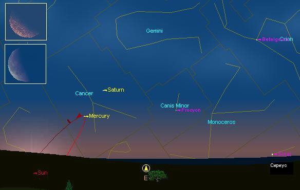 Меркурий - вечерняя (восточная) элонгация 12 марта 2005