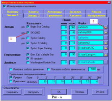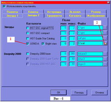 Для того чтобы "прописать" в программе каталог “USNO-2” активизируем вкладку "Звёзды-2", установив флажок в окне (1-рис-б)