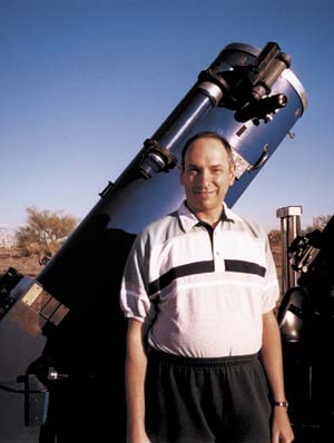 Утро 2-го октября выдалось облачным и теплым. Я выставил «Миранду», мой 16-и дюймовый ДОБ и начал свою обычную охоту за кометами. Рядом трещали своими автоматизированными приводами телескопы других ЛА. Дэвид Леви перед своей 16-ти дюймовой «Мирандой» (на фото слева). Пройдя по дорожке неба, я увидел Сатурн. Все бы ничего, но в 0,6° от него, моему взору открылось маленькое, размытое пятнышко, не превосходящее 10 звездную величину. Сначала я подумал что это какой то дефект изображения, но объект выглядел очень «реально». Чтобы это проверить я взглянул в мой «искатель», представляющий собой, ничто иное как 8-и дюймовый Meade. Загадочный объект стал заметно тускнее, но он был виден на том же самом месте! Взглянув на экран ноутбука, с запущенным планетарием Earth Centered Universe, Дэвида Лейна, с помощью которого я управляю моим телескопом, убедился, что никакого яркого NGC объекта в поле зрения телескопа нет. Уверенность в том что этот странный объект – неизвестная никому комета, все больше крепла во мне.