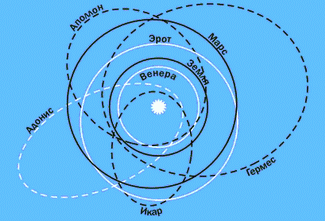 Метеориты, которые попадают в руки человека после падения на Землю, являются, как правило, обломками астероидов. Они могут сотни миллионов лет двигаться по своим орбитам вокруг Солнца, как и остальные, более крупные тела Солнечной системы. Но если их орбиты пересекаются с орбитой Земли, то они могут с ней столкнуться. Это возможно потому, что эксцентриситеты орбит астероидов (а тем более их частей) больше, чем эксцентриситеты орбит больших планет. В афелии некоторые из них оказываются ближе к Солнцу, чем Земля, а другие в перигелии - дальше, чем Юпитер и даже Сатурн. Известно несколько астероидов, которые периодически проходят на расстоянии менее 1 млн. км от нашей планеты. Так, Гермес в 1937 г. отделяло от Земли всего 800 тыс. км, а в 1989 г. астероид диаметром около 300 м прошел от нее на расстоянии менее 650 000 км. Современные наблюдательные средства, в частности приборы, установленные на космических аппаратах, обнанужили, что в окрестностях Земли каждый месяц пролетает несколько тел размером от 5 до 50 м. К настоящему времени известно около 20 тел астероидного размера (от 50 м до 5 км), орбиты которых проходят недалеко от орбиты нашей планеты. Опасения по поводу возможного столкновения таких тел с Землей значительно усилились после падения на Юпитер кометы Шумейкеров-Леви 9 в июле 1995 г.